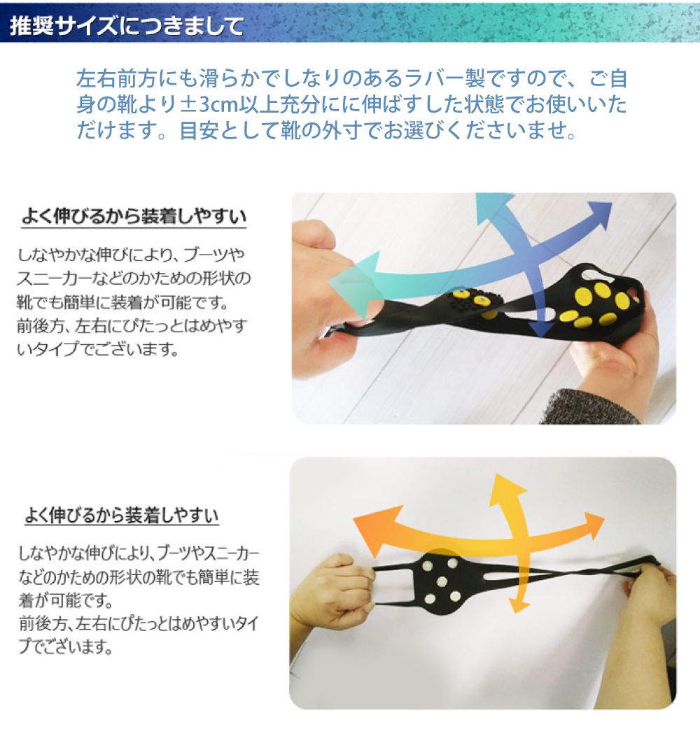 関連キーワード:スノースパイク スノーステップ 滑り止め 靴底用 着脱式 アイゼン アイスグリップ ラバー 雪対策 氷結 雪道 路面凍結 転倒防止 通勤 通学 子供 大寒波 滑らない ピン 携帯 脱着式 滑り止め 雪上 雪道 氷上 スノー アイス スパイク アイゼン 凍結 路面 道路 通勤 通学 メンズ レディース 子供 男女兼用