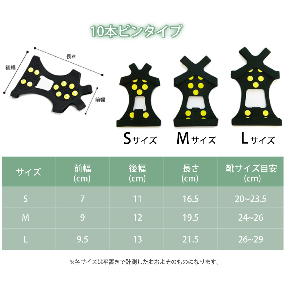 アイゼン 靴 滑り止め 雪 雪上 雪道 スノースパイク ゴム 靴底 滑らない 簡単装着 取り付け型 10ピン 男女兼用 Cybernet