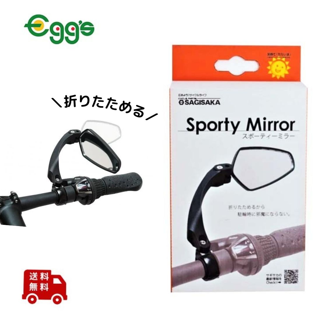 自転車 ミラー スポーティーミラー ハンドル右側取付け ブラック サギサカ リア 後方 バックミラー クロスバイク シティサイクル