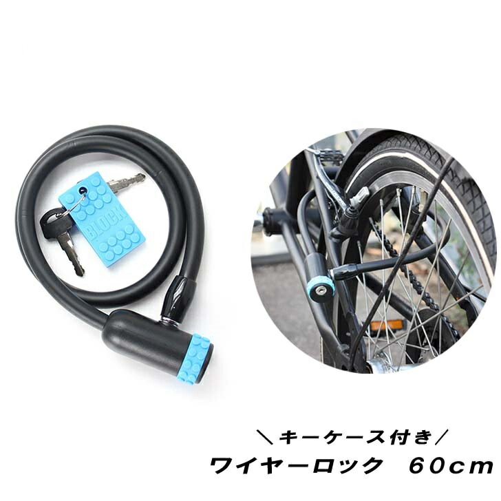 BLOCK ロック キーケース付き SL 60cm ブルー 自転車 ワイヤーロック 鍵 かぎ ワイヤーキー