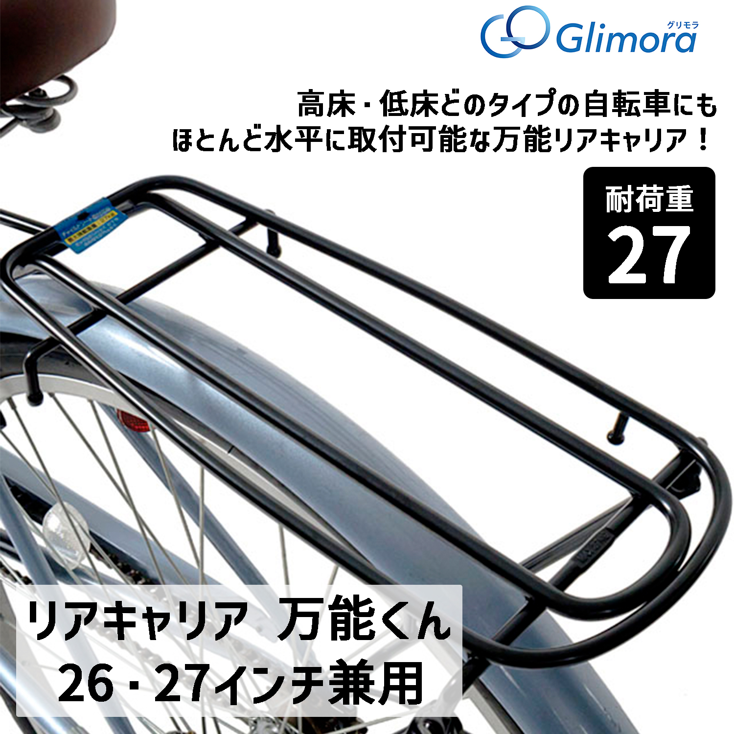 自転車 キャリア 荷台 後用 リヤキャリヤ 万能くん 26インチ 27インチ 兼用 低床 高床 ブラック 丸八工機