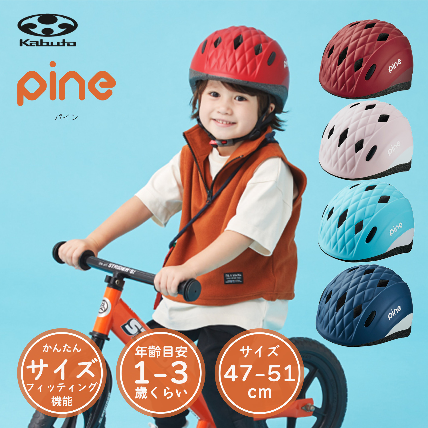 子供用 自転車 ヘルメット OGK Kabuto オージーケー カブト PINE パイン 47-51cm フラミンゴレッド SGマーク キッズ 幼児 ストライダー 新入園 プレゼント