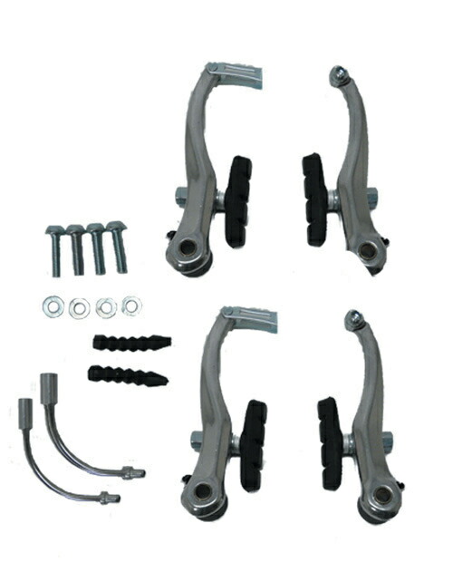 セット内容:Vブレーキ本体×2・ブレーキシュー×2・リードパイプ×2・ブーツ×2・取付けボルト×4