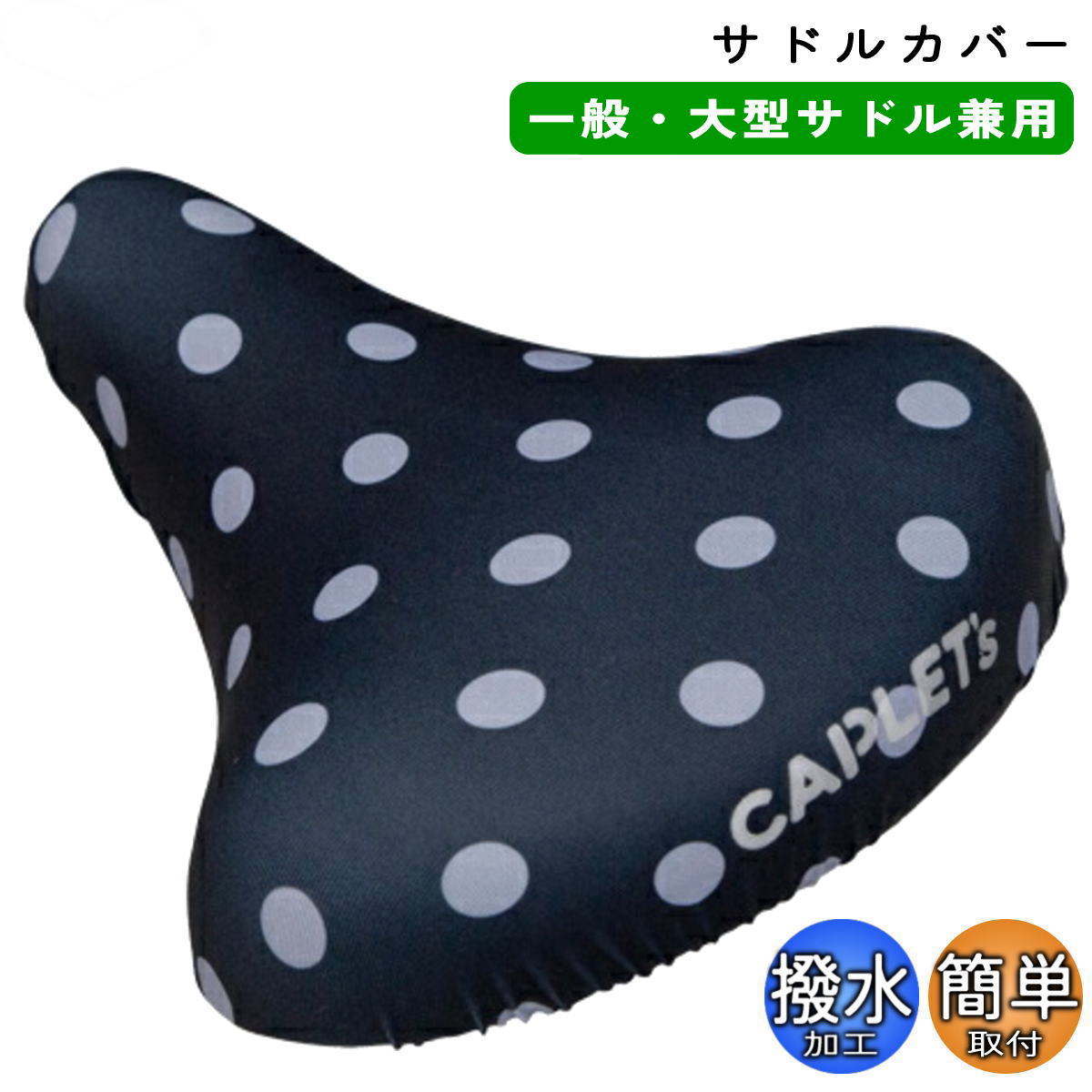 自転車 サドルカバー フルカラー チャリCAP 一般 大型サドル兼用 ドットブラック aile エール シティサイクル 軽快車 電動自転車 おしゃれ かわいい