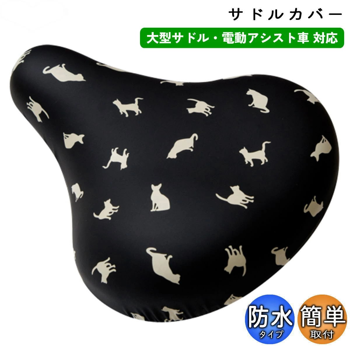 商品名 : 自転車 サドルカバー のびーる チャリCAP 大型サドル用 アリストキャットブラック aile エール シティサイクル 軽快車 電動自転車 キャラクター かわいい