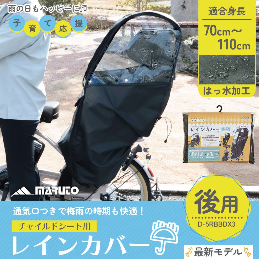 自転車 チャイルドシート用レインカバー MARUTO 後用 D-5RBBDX3 ブラック 送料無料 子乗せカバー 同乗器 通園 大久保