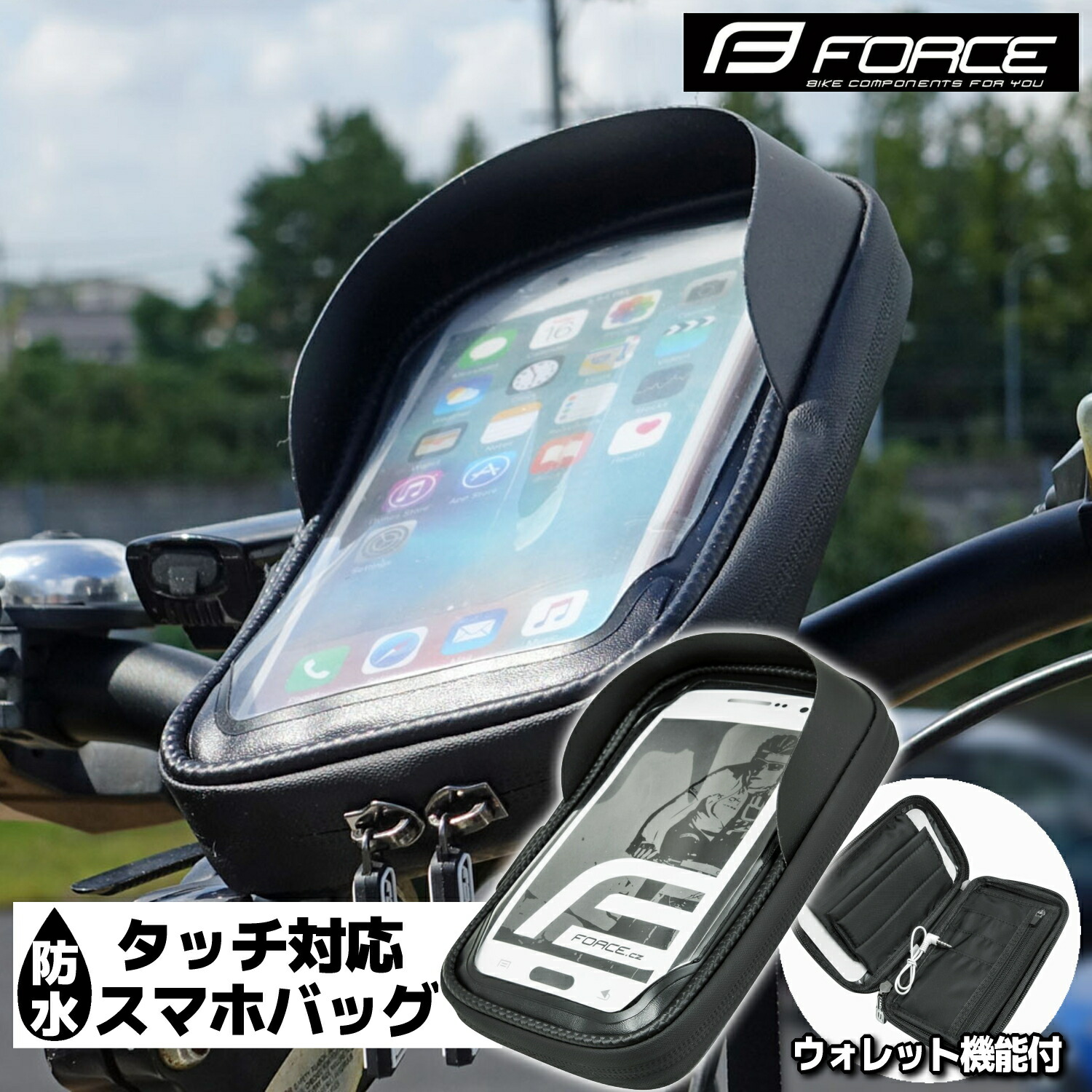 自転車 スマホホルダー 防水 スマホバッグ TOUCH ブラック FORCE フォース ステム ハンドル ウォレット 財布