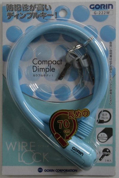自転車 鍵 ワイヤー ソリッドカラー ワイヤーロック 70cm ライトブルー ロック カギ ディンプルキー GORIN ゴリン