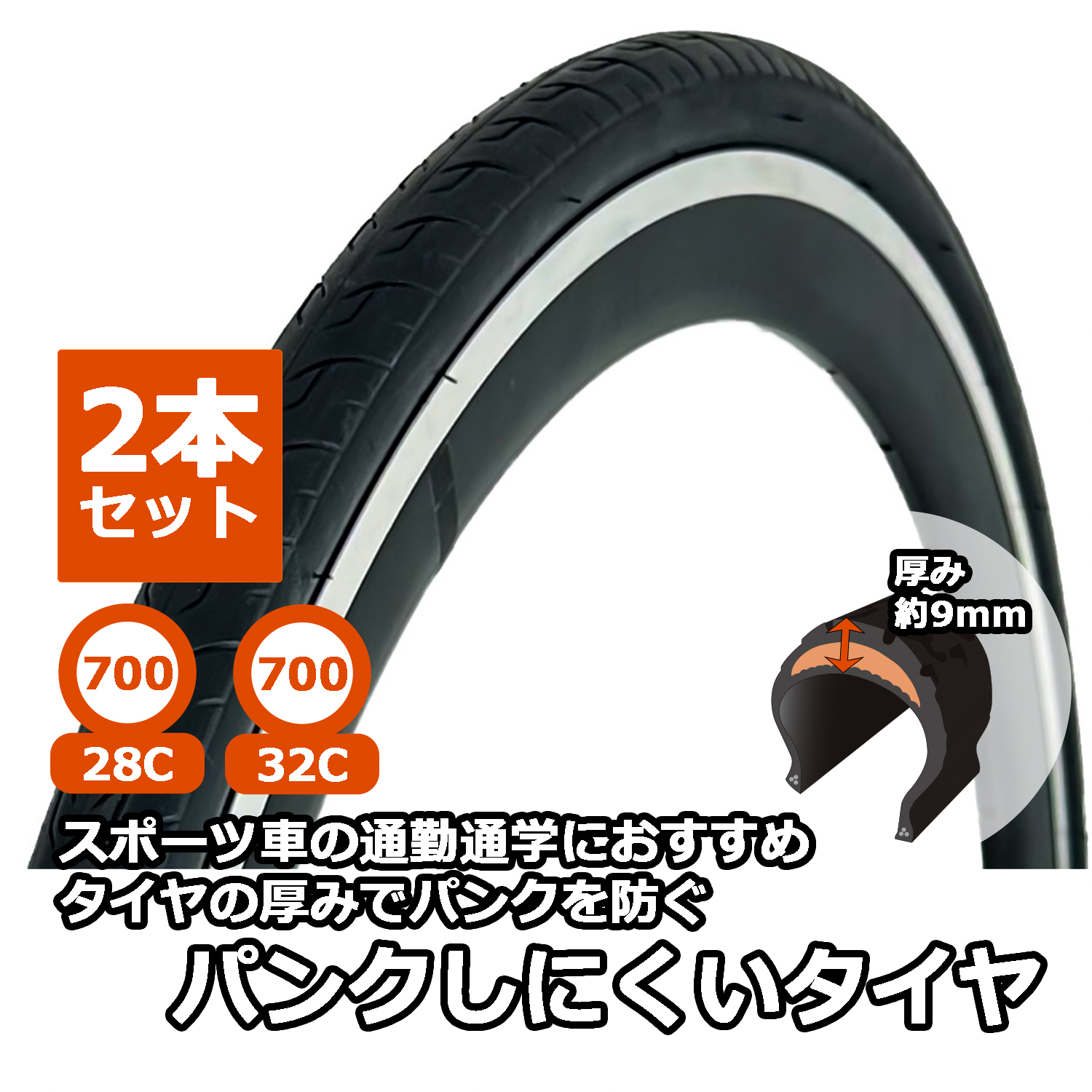 自転車 2本セット タイヤ パンクしにくいタイヤ 700X28C クロスバイク ロードバイク 700c 28c 32c 耐パンク 通勤 通学 サギサカ 交換 修理 補修