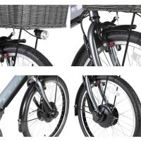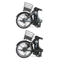 折りたたみ、20インチ、6段変速、走行距離 約50km、フロントバスケット、前後フェンダー、ローラーブレーキ搭載