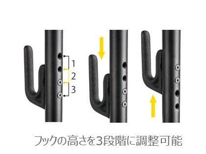 ■フック高さを3段階に調整可能。