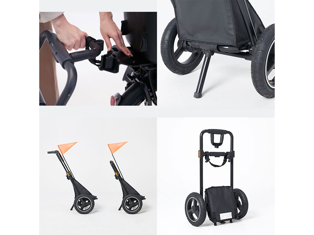 ■子ども乗せ自転車でもけん引できて、スムーズな走行を実現したサイクルトレーラー。