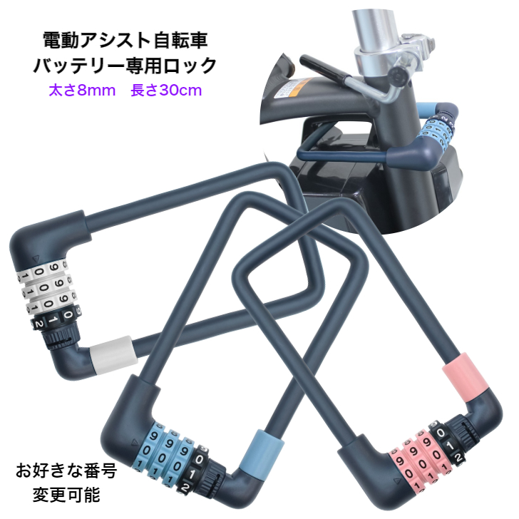 FINO 電動アシスト自転車バッテリー専用ロック ダイヤルタイプ バッテリー盗難防止 抑止 暗証番号4桁 φ8×300mm 30cm 専用設計 コンパクト