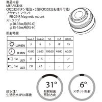 | 仕様 | クイックリリースマグネットマウント モードメモリー(※再起動時に終了時のモードで起動) オートセーフモード(※バッテリー残量低下時に光量を落とし照射時間を確保) |
