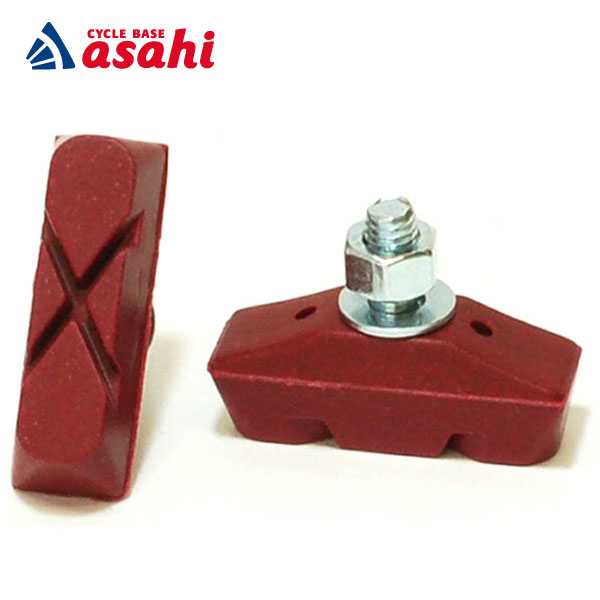 「アサヒサイクル」ブレーキシュー アルミリム用1ペア WO用 赤ゴム(台紙付)