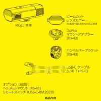 | 付属品 | RB-42 GoProマウントアダプター、RB-43ハンドルバーブラケット、USB-Cタイプケーブル、ビームカットレンズカバー(※本体に付属) |