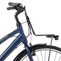 ・オフィスプレスコミューターはスーツスタイルでも快適な乗車姿勢で漕ぐことができるようにしたビジネスマンのためのシティコミューターです。ハンドルの幅/高さ/カーブの具合や、サドルの位置などを専用設計し、トップチューブ長にもゆとりを持たせました。27インチのシティサイクルでは乗車姿勢が窮屈になるような背の高い方でも窮屈すぎず、前屈みにならずに快適な姿勢でスマートにお乗りいただけます。