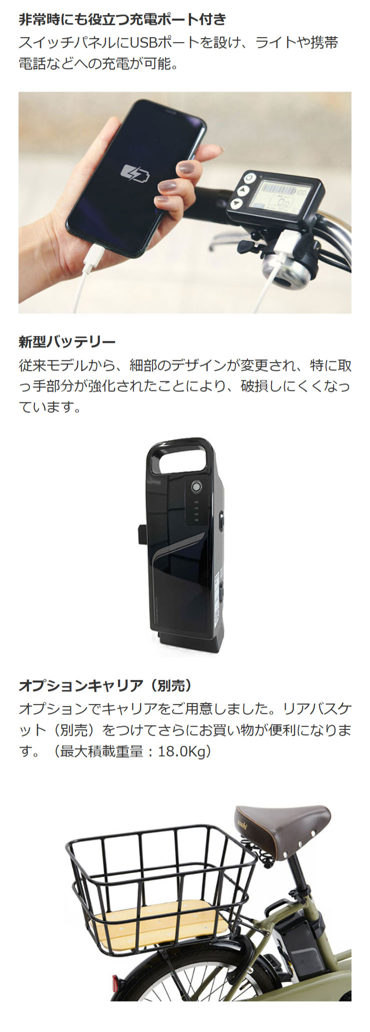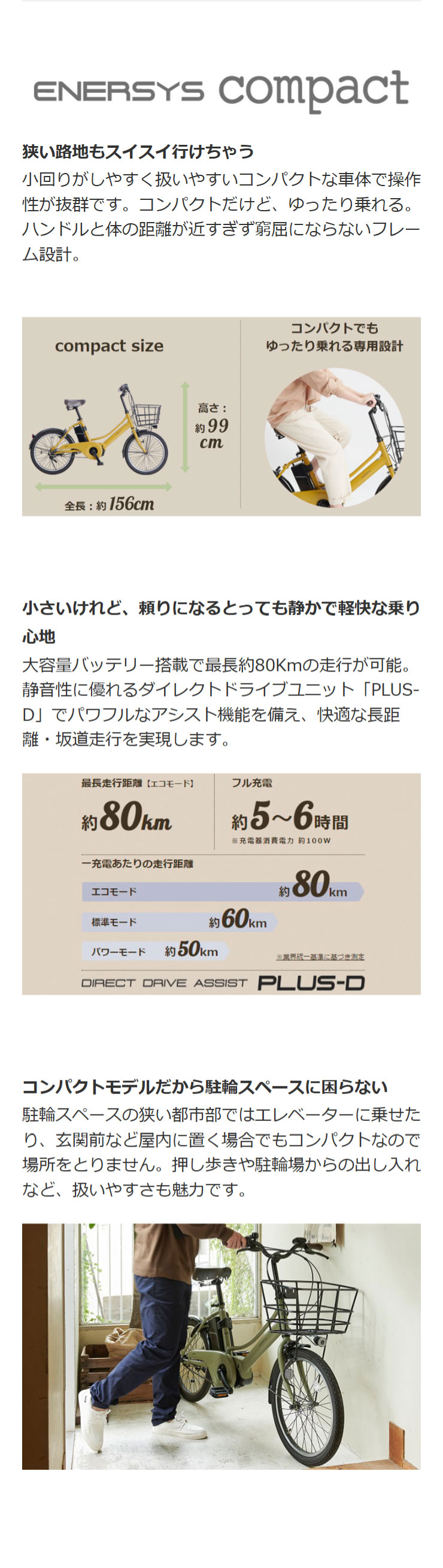 | 充電1回の走行距離 | エコモード:約80km 標準モード:約60km パワーモード:約50km |