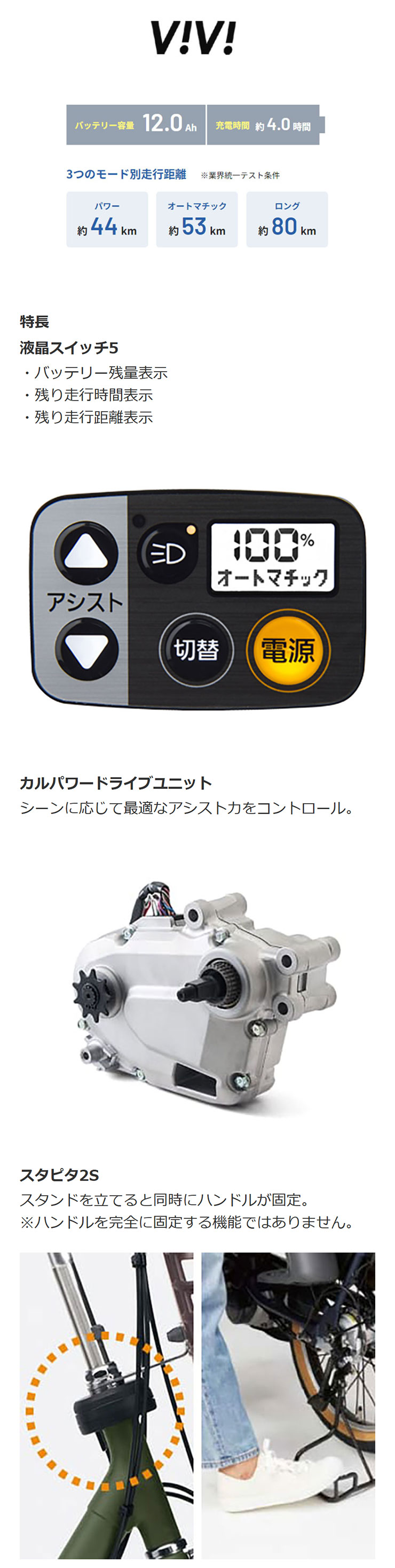 | 充電1回の走行距離(標準パターン) | 約44km※1(アシストモード:パワー使用時) |