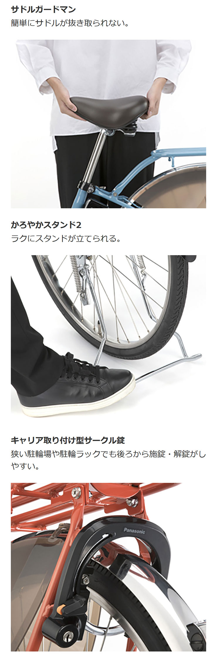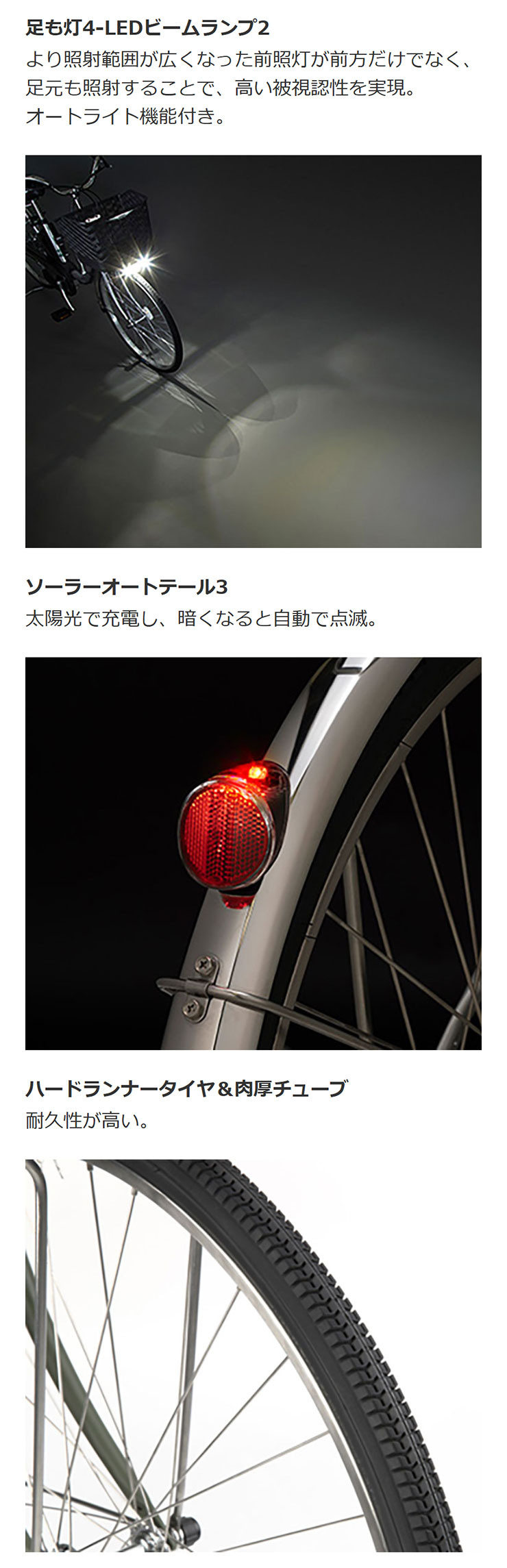 | リフレクター | バッテリーライト部・後泥よけ・前後車輪・ペダルに取り付け |