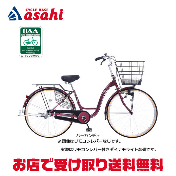 「あさひ」カーグリラックス BAA-Q 26インチ 変速なし ダイナモライト シティサイクル ママチャリ 自転車