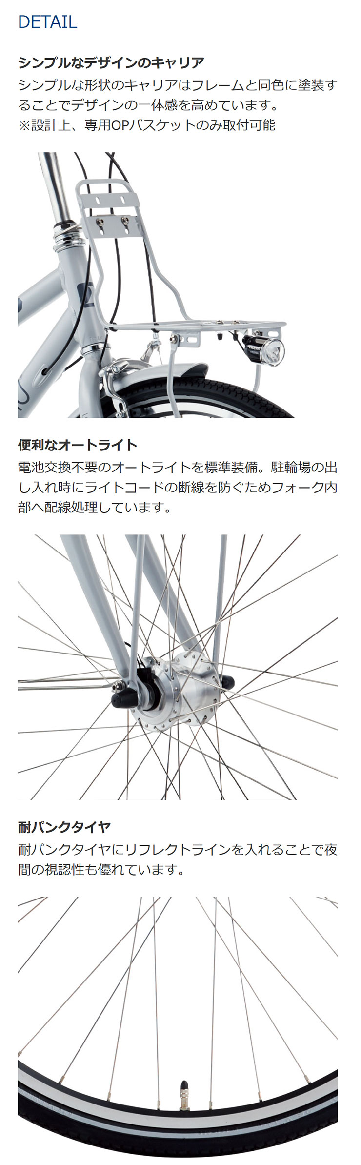 | 付属品 | ベル / サイドスタンド / フロントキャリア / リング錠 / チェーンケース |