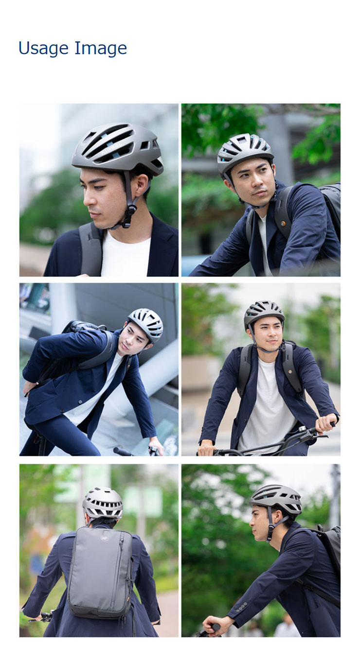 ・競技用自転車で使用されるような流線型でシャープな印象のヘルメットが多い中、「AIRBEL」は競技用と街乗り用の中間をとった、ミニマムで洗練された印象のデザインが特徴的です。