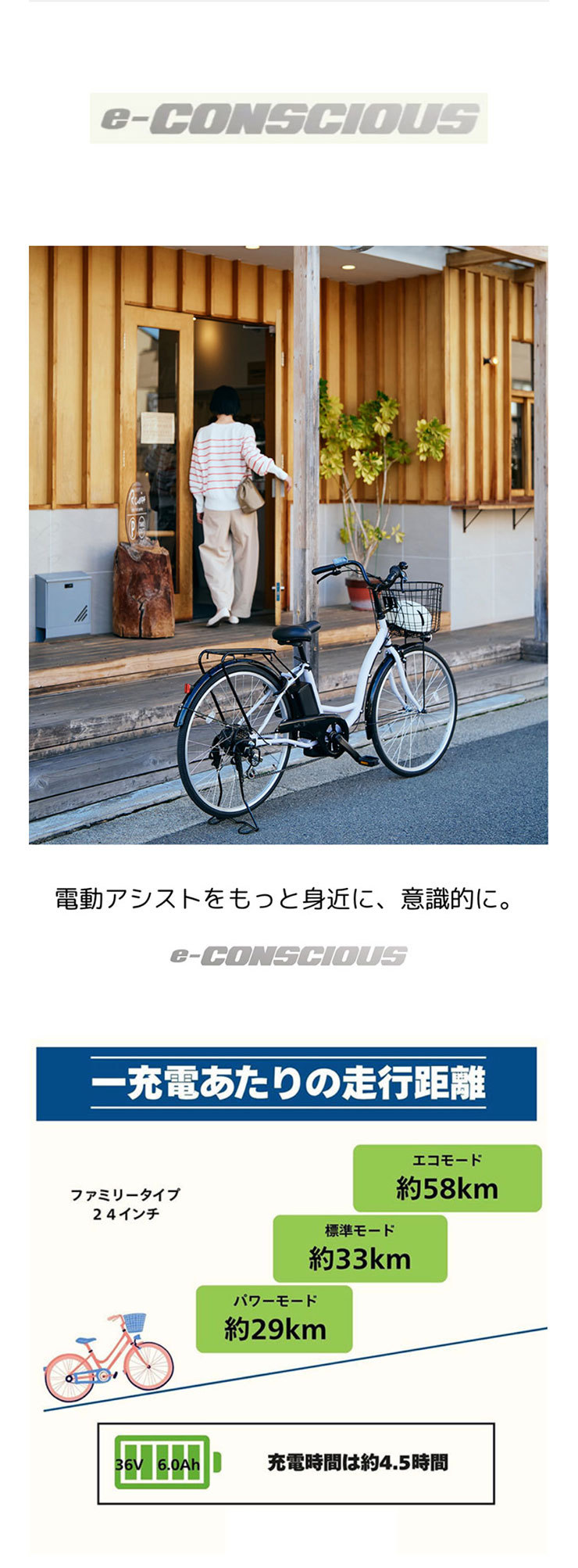 | 走行距離 | 約58km(エコ) 約33km(標準) 約29km(強) |