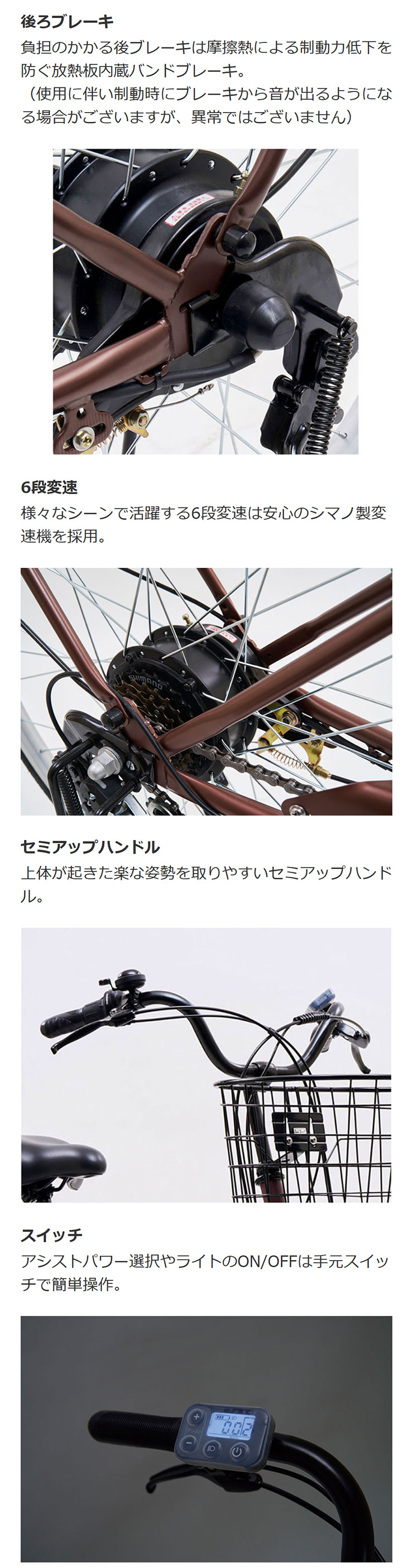 | ハンドルバー素材・形状 | 鉄 セミアップハンドル |