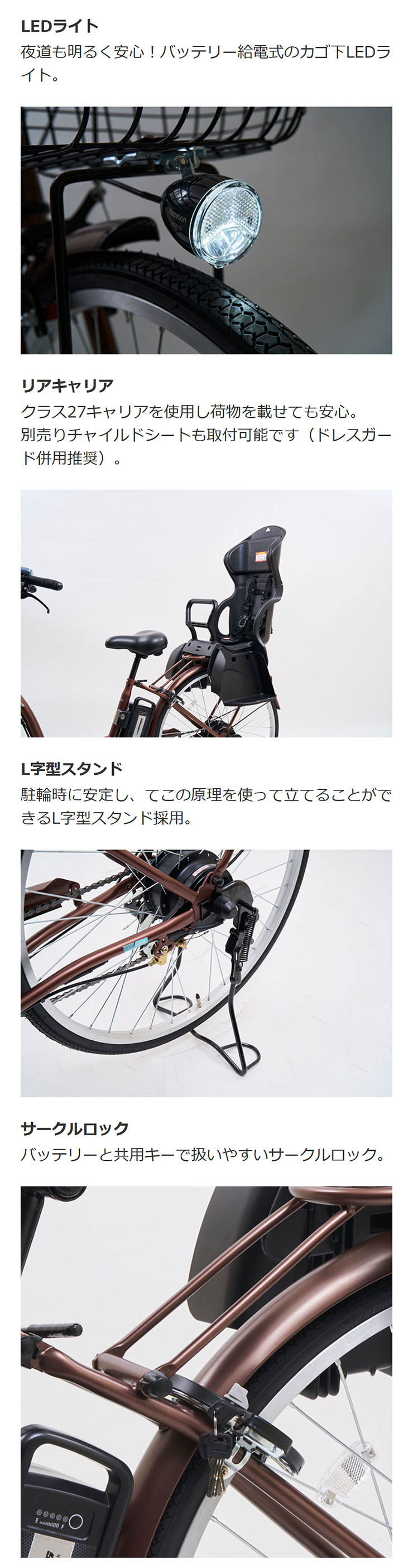 | サドル | 座り心地の良いハイソフトサドル |