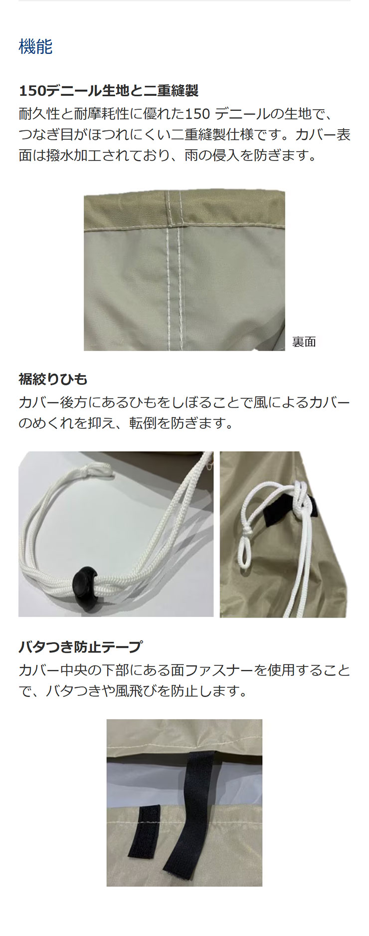 ・撥水加工を施しているので雨の侵入を防ぎます。