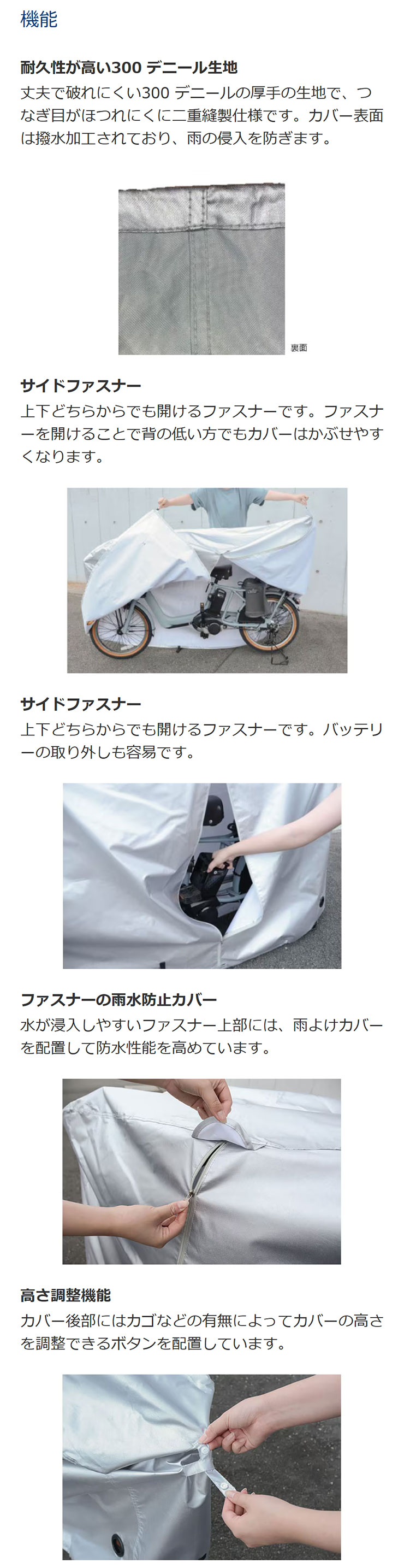・300デニールの生地を使用した丈夫で破れにくい厚手の自転車カバーです。