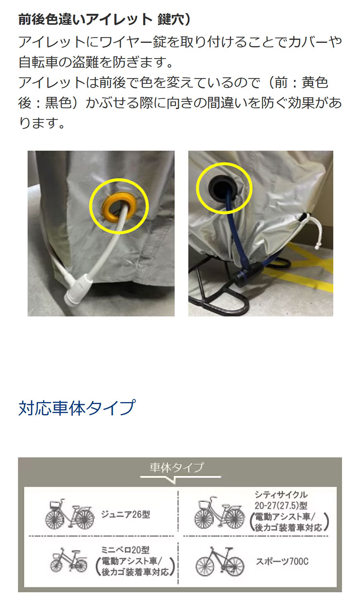 電動アシスト自転車にオススメの厚手自転車カバー。様々な車体に対応するサイズです。