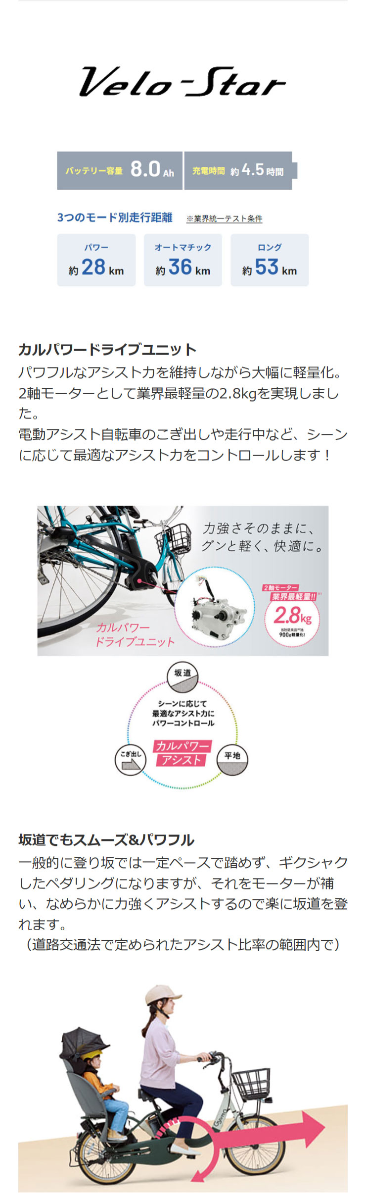 | 充電1回の走行距離(標準パターン) | 約28km※(アシストモード:「パワー」使用時) |