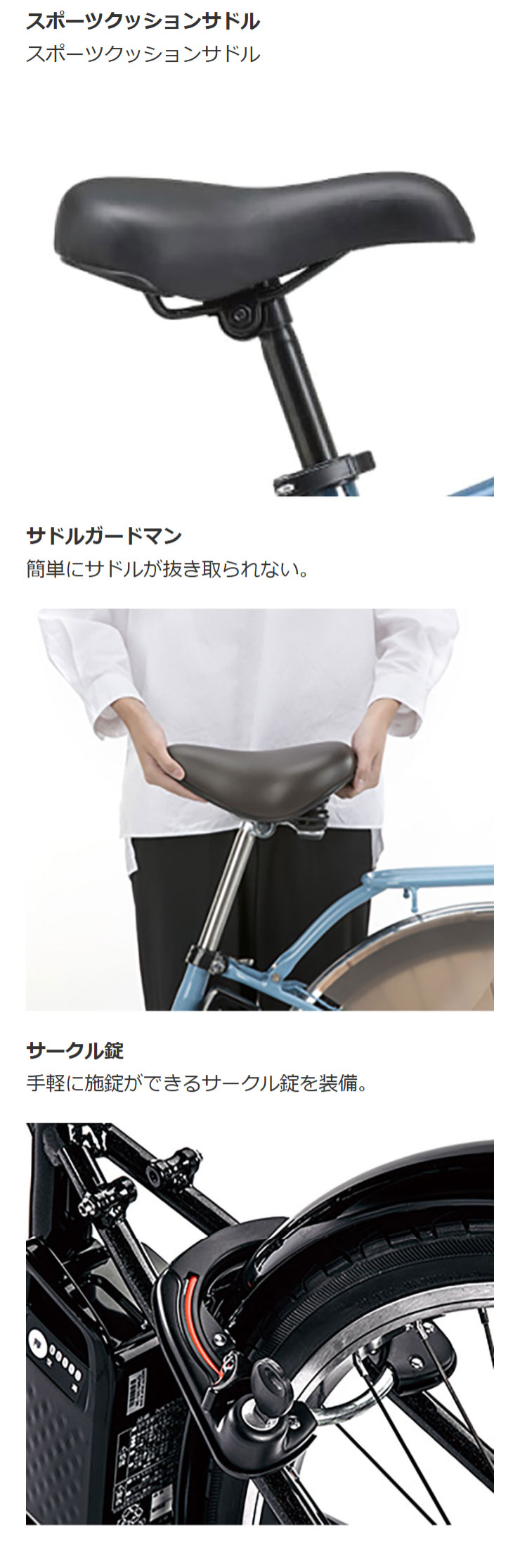 | 施錠方式後輪 | 後輪サークル錠 |