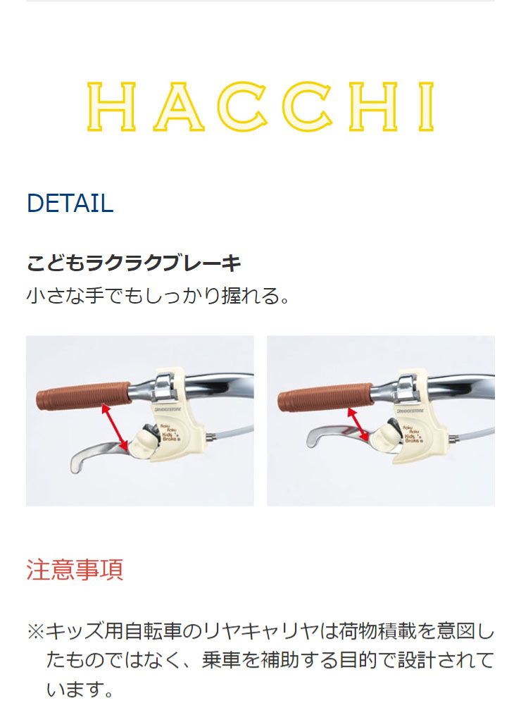 注意事項※キッス゛用自転車のリヤキャリヤは荷物積載を意図したものて゛はなく、乗車を補助する目的て゛設計されています。