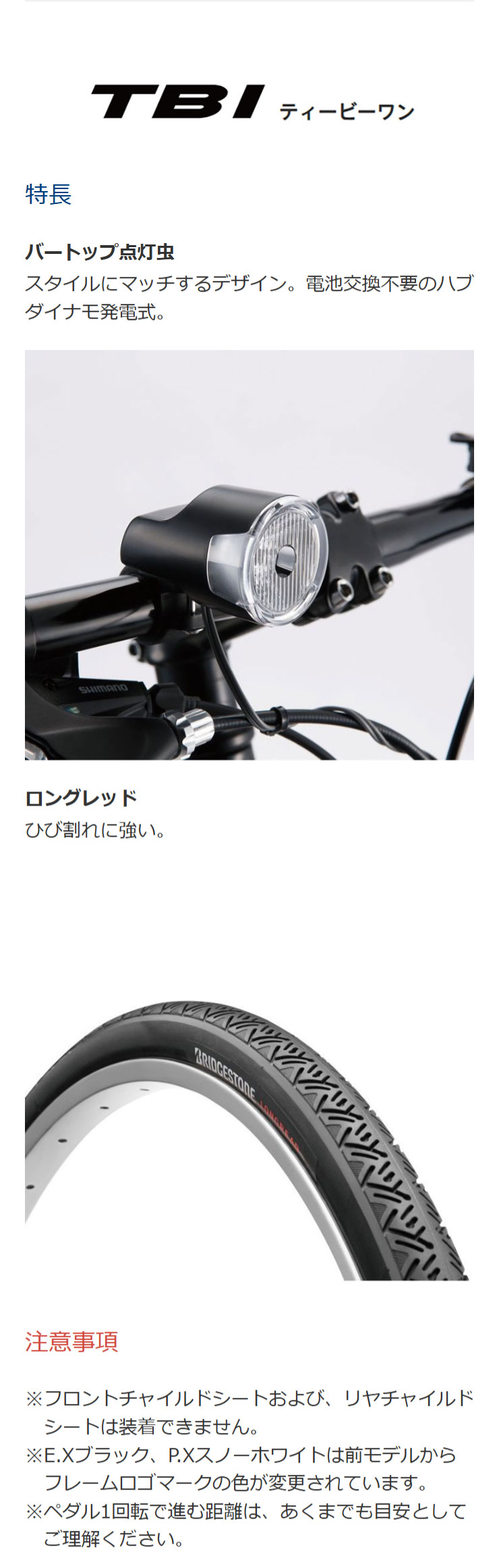 ※E.Xブラック、P.Xスノーホワイトは前モデルからフレームロゴマークの色が変更されています。