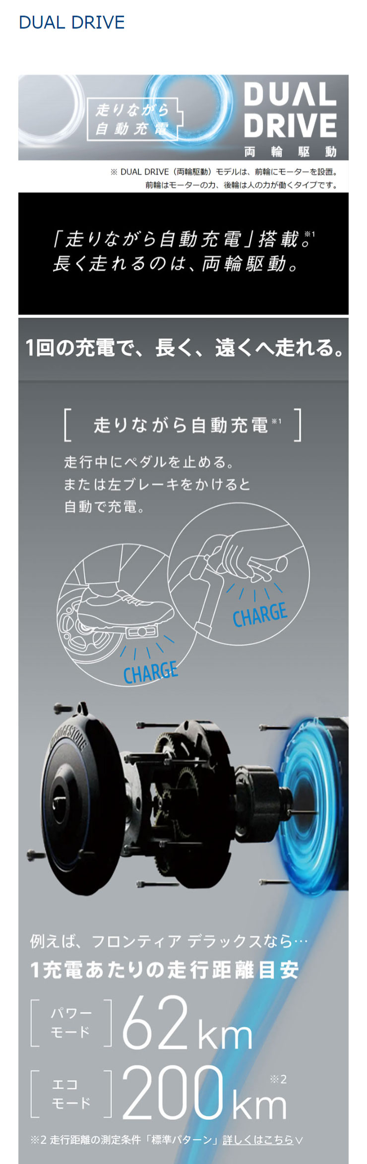 | アシストドライブ | 4走行モード(パワー-オート-エコ-アシストオフ) |