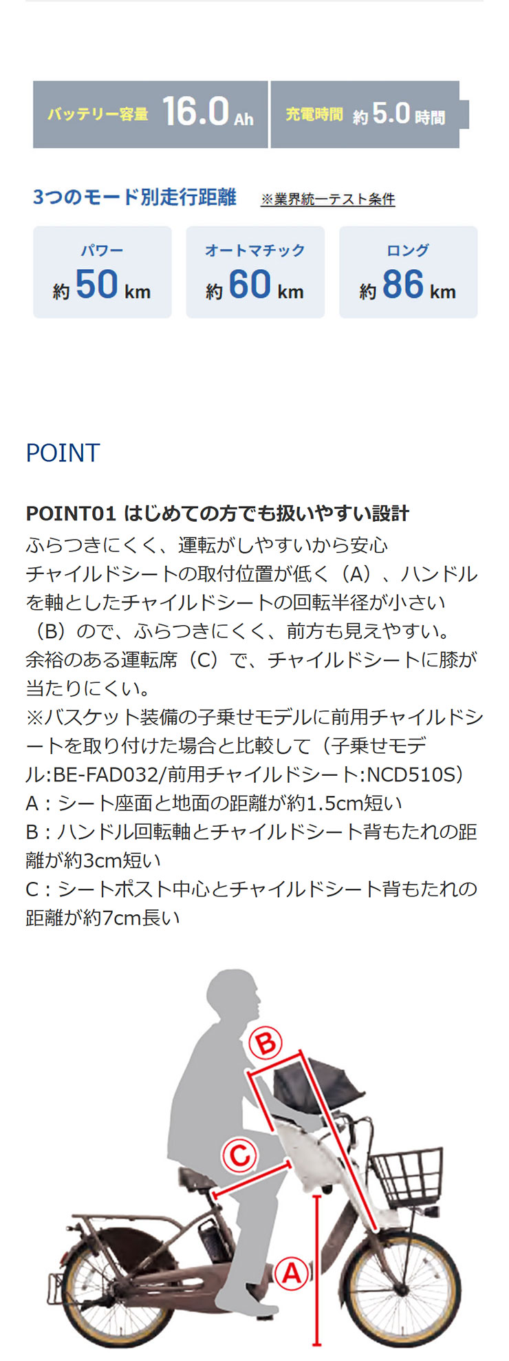 | 乗車適応身長 | 142cm以上(幼児2人同乗の場合は155cm以上) |