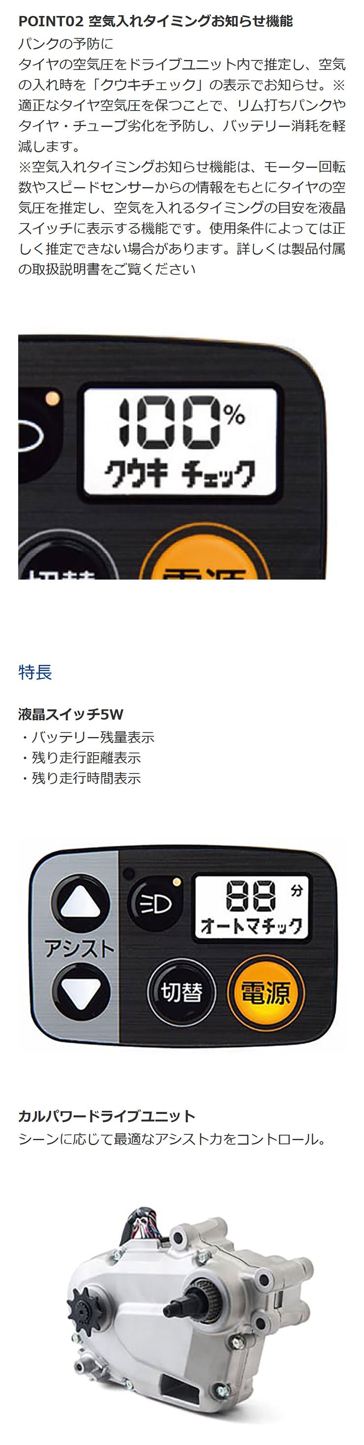 | 充電1回の走行距離(標準パターン) | 約50km※1(アシストモード:「パワー」使用時) |
