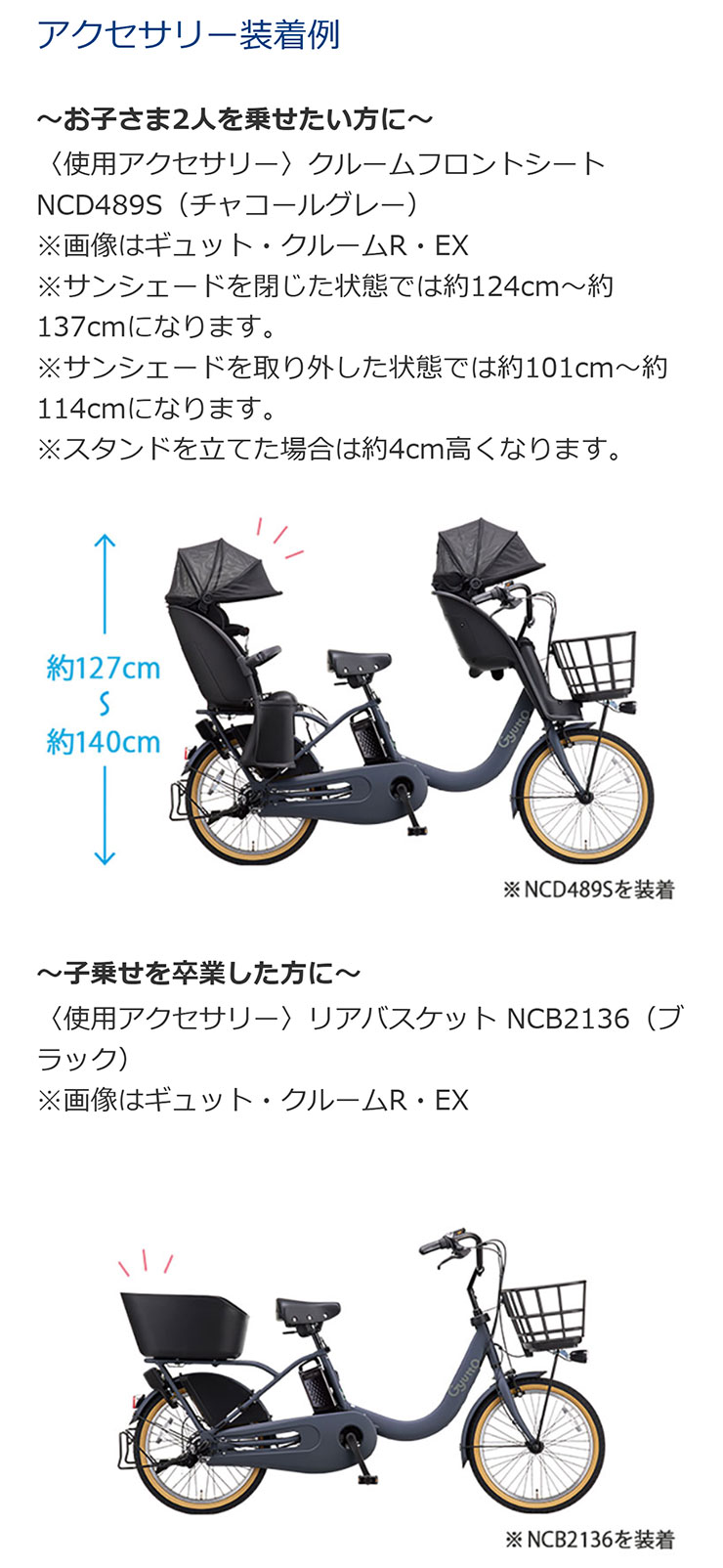 | 乗車適応身長 | 142cm以上(幼児2人同乗の場合は155cm以上) |