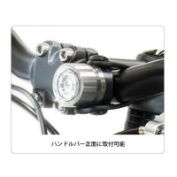 ハンドルバー正面にすっきり取り付けられるアルミ合金製ボディーのフロントライト。