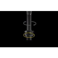 フロントフォークのアクスル部とボトムブラケット部で車体を固定するリペアスタンド。高さや角度の調節に加えて、重心の位置調節や360°回転も可能。 作業中でも高さを変えずに360°水平回転できるので、自転車の反対側の調整をおこないたい時などに便利です。