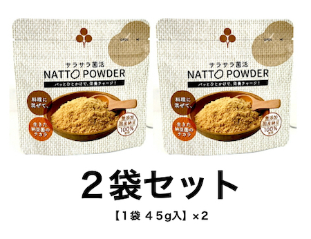 ポイント15倍還元 なっとう 納豆パウダー NATTO POWDER 菌活 【2袋セット(1袋45g入×2)】 なっとう 粉末 大豆 納豆菌 無添加国産納豆100%使用 腸活