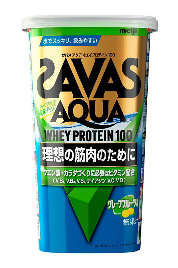 WHEY PROTEIN 100 明治 ザバス アクア ホエイプロテイン100 グレープフルーツ風味 280g クエン酸+カラダづくりに必須なビタミン配合 V.B1、V.B2、V.B6、ナイアシン、V.C、V.D |