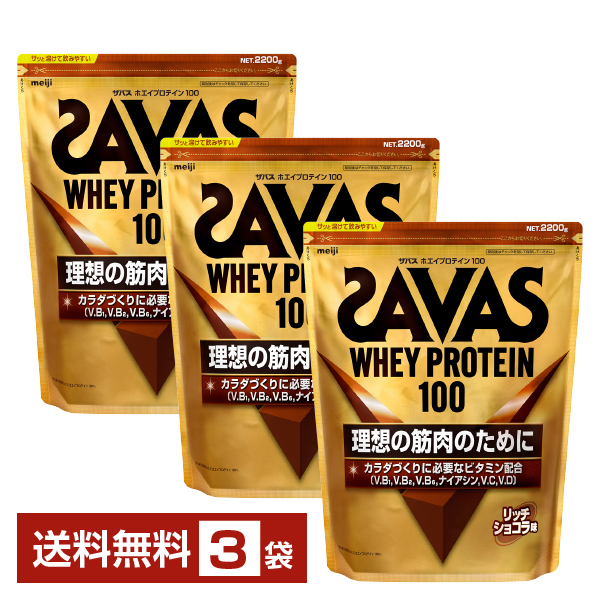 WHEY PROTEIN 100 明治 ザバス ホエイプロテイン リッチショコラ味 2200g カラダづくりに必要なビタミン配合 (V.B1、V.B2、V.B6、ナイアシン、V.C、V.D) |