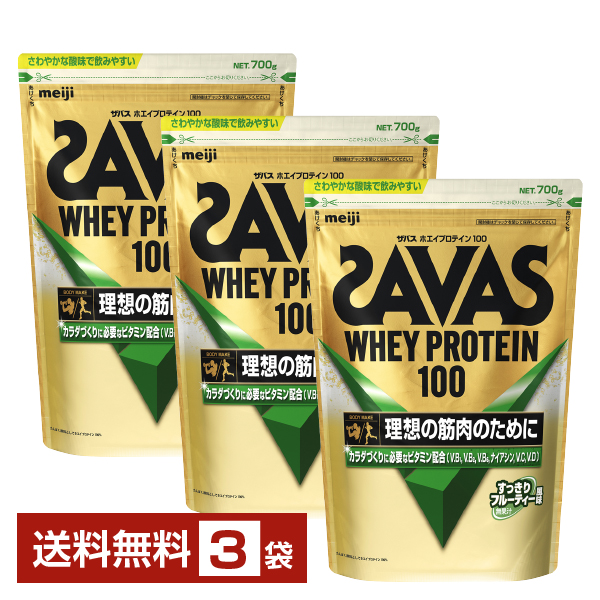 WHEY PROTEIN 100 明治 ザバス ホエイプロテイン すっきりフルーティー風味 700g カラダづくりに必要なビタミン配合 (V.B1、V.B2、V.B6、ナイアシン、V.C、V.D) |
