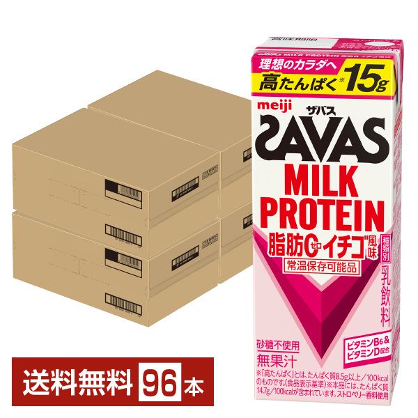 ザバス ミルクプロテイン 脂肪0 イチゴ風味 明治 200ml 紙パック 24本×4ケース(96本) 送料無料