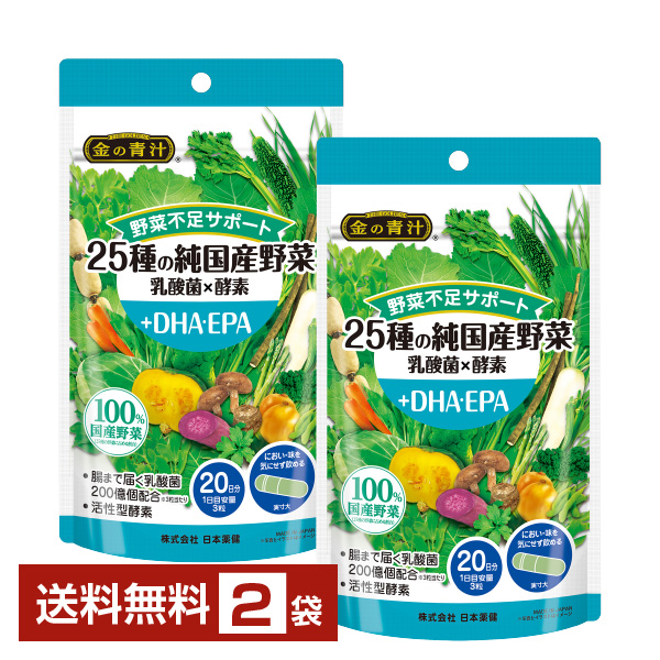 25種の純国産野菜 乳酸菌×酵素 +DHA・EPA 野菜不足をサポート 100%国産野菜 におい・味を気にせず飲める 腸まで届く乳酸菌200億個配合 活性型酵素 |