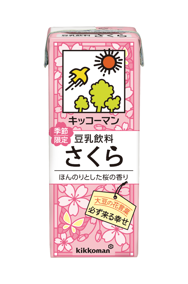 キッコーマン「豆乳飲料 さくら」は、ほんのりとした桜の香りと優しい甘さで、華やかな桜風味が特徴の豆乳飲料です。